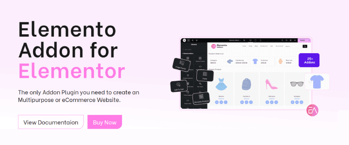 The Elemento Addon for Elementor is a versatile plugin to help you build beautiful and functional WooCommerce sections.