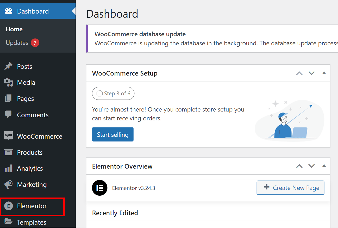 Make sure that WooCommerce and Elementor are both installed and activated on your WordPress website.