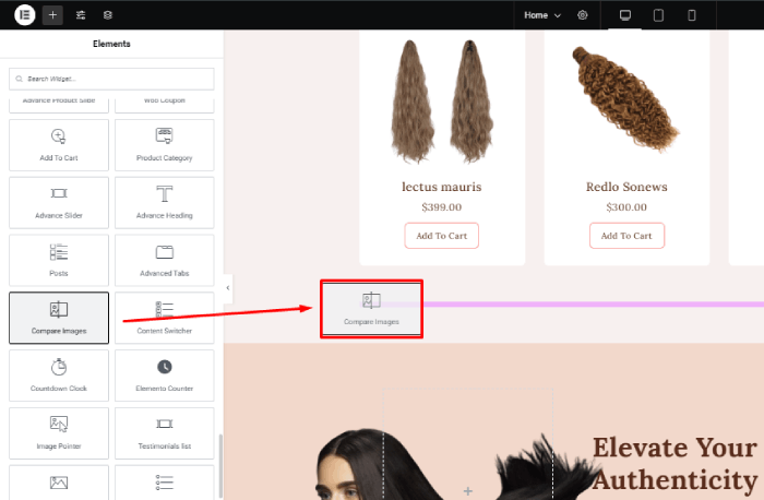 Drag and drop the Image Comparison widget anywhere on the page.