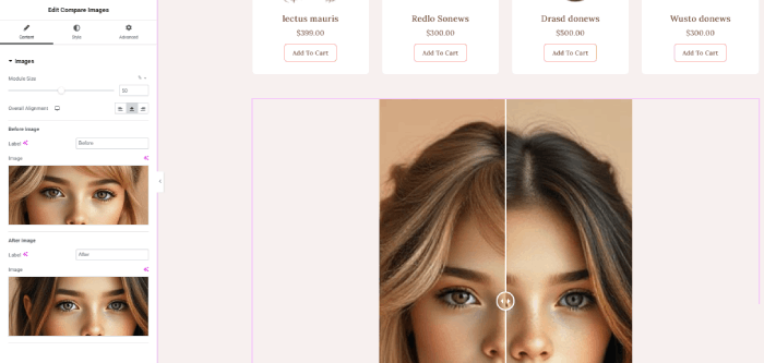 Here, you can see the newly added Image Comparison Widget in the image below.