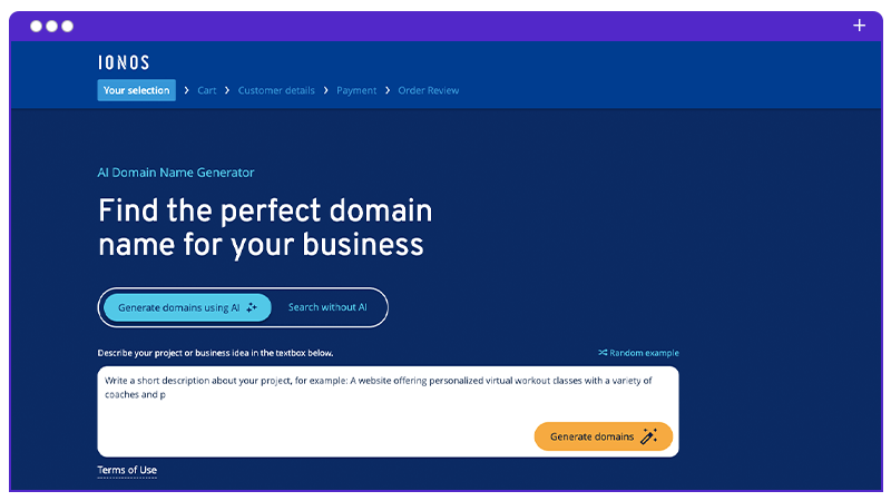 Ionos is an AI-powered domain name generator designed to help you find the perfect domain for your business or brand.