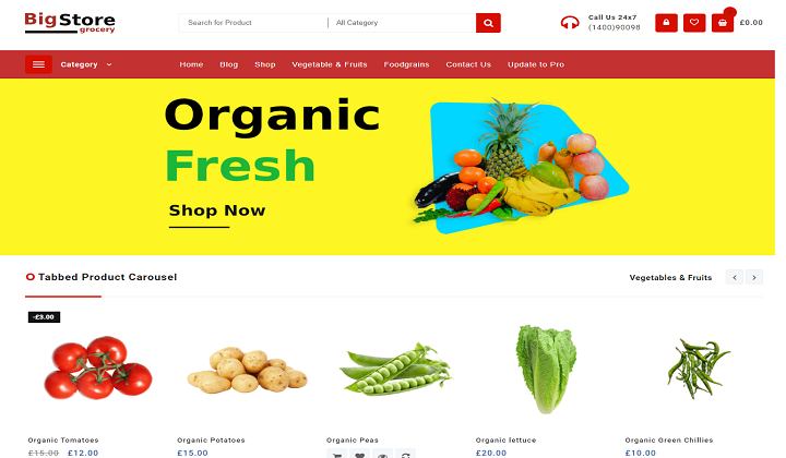 Big Store grocery is an advanced WordPress template developed to design for organic food, fresh farm vegetables, grocery, dairy products, fruits, spices, agriculture, and mega and multipurpose stores.