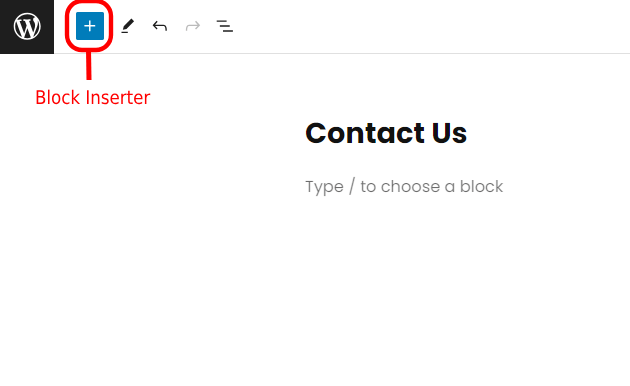 Step 3) Click on the Plus (+) icon or Block Inserter
