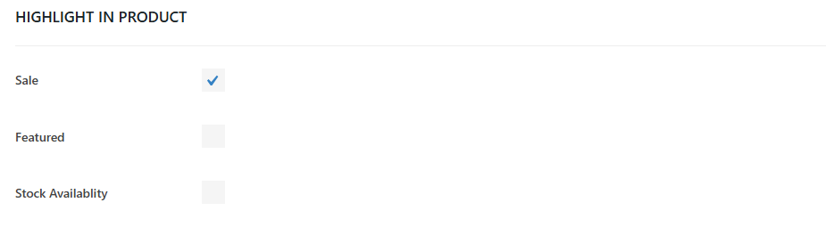 Highlight in Product – Check the box and search Sale Product, Featured Product, and Stock products in your search box.