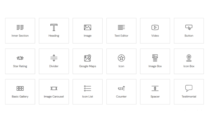 Access to fundamental widgets like headings, text, images, videos, buttons, and galleries.