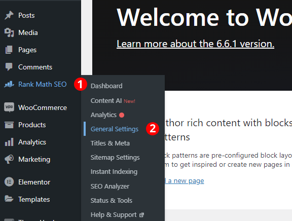 Hover your cursor on Rank Math SEO and then click on General Settings.