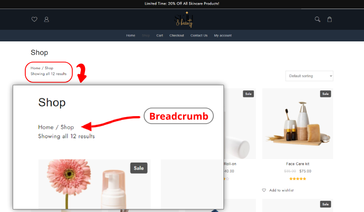 We have to put the Breadcrumb on the Shop Page. This is our Shop Page now.