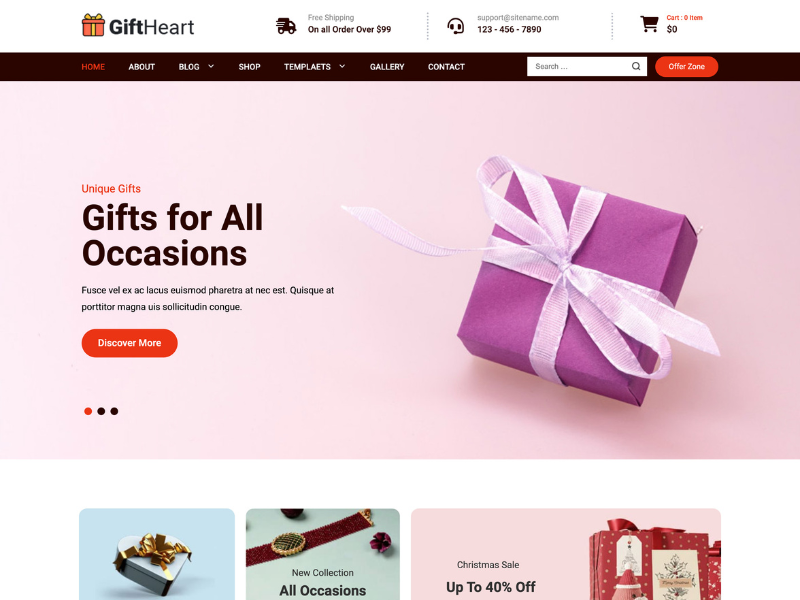 GiftHeart FSE is a modern and highly customizable WordPress theme designed specifically for gift stores and online shops.