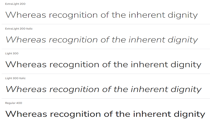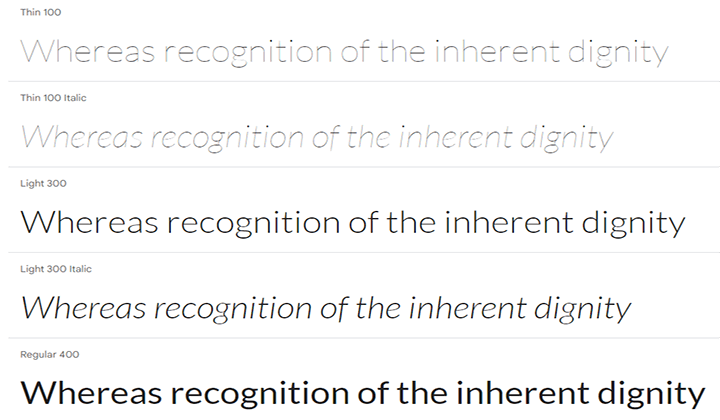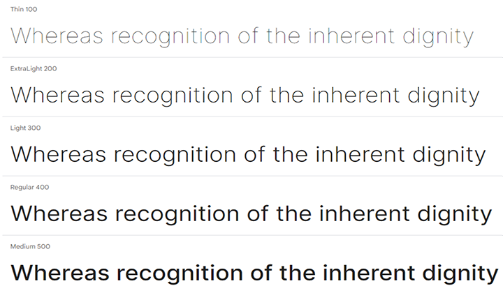 Its regular weight is effective for text of medium size (14-48px), while the bolder styles are best suited for headings. It offers ten weights, including thin, regular, semi-bold, extra bold, and black.
