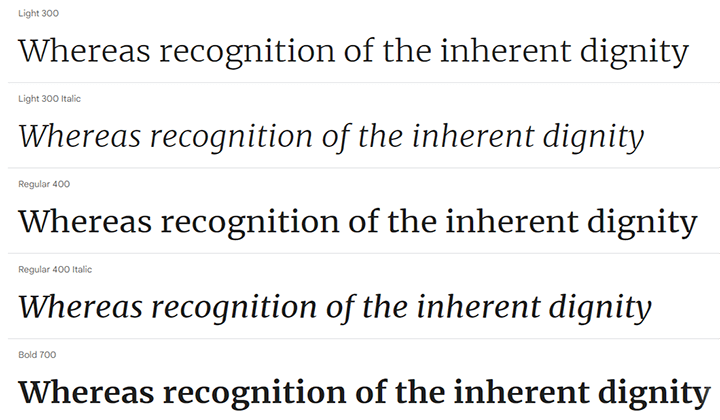 Its large x-height, slightly condensed letterforms, strong edges, and open forms make for a clear and comfortable reading experience even for small sizes.