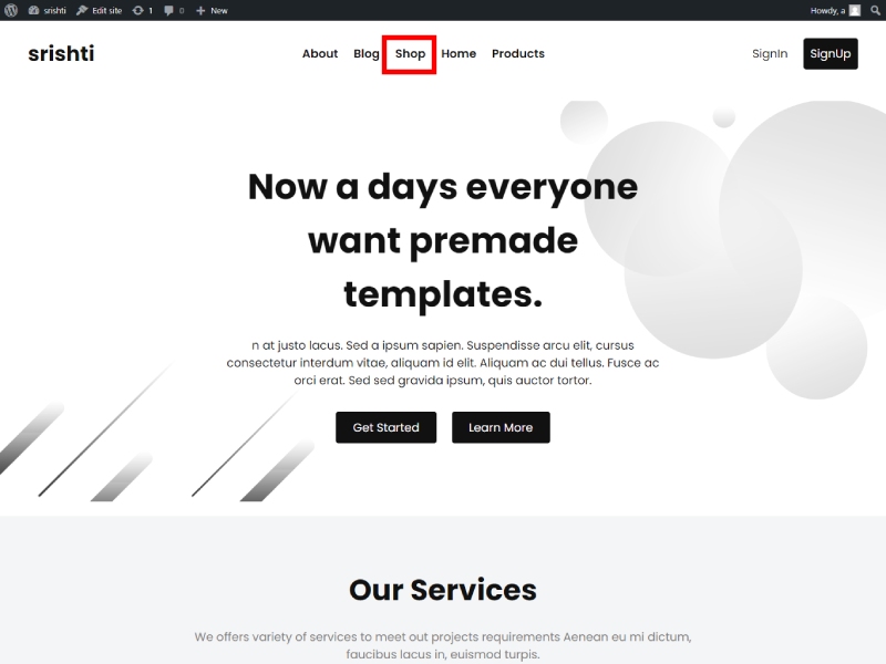 This is the Shop Page. Now, click on the “Edit site” Option given at top