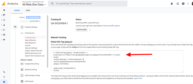 For connecting Google Analytics by using the Code in the WordPress theme. First, you will need to copy your Google Analytics tracking code from your Google Analytics account.