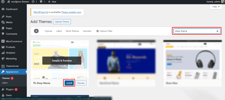 I’m selecting the TH Shop Mania theme for reference. You can install this great theme for your online store using the link below.