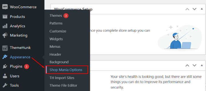 Go to Appearance and select Shop Mania options.