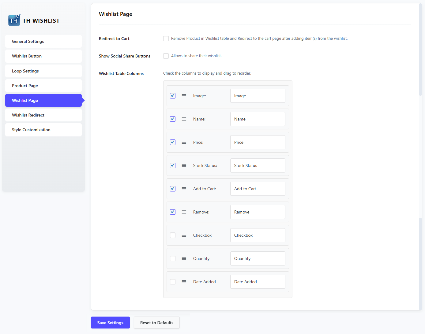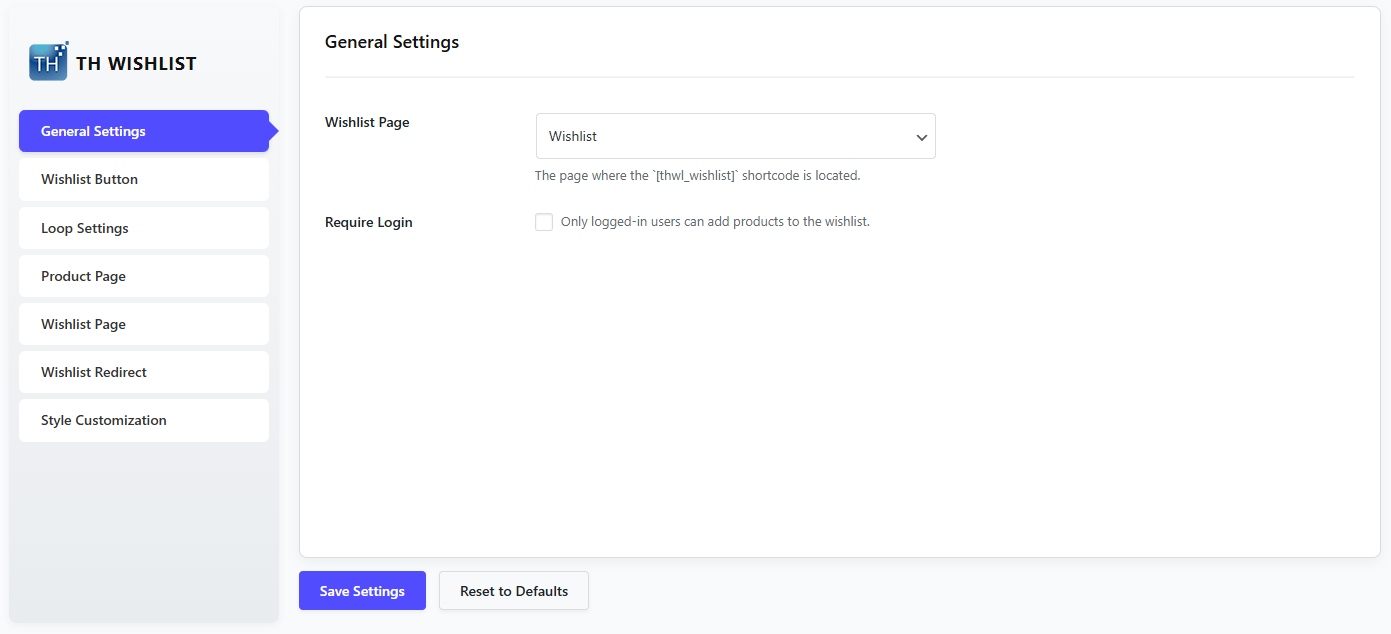 Here, you can see the general settings of the wishlist plugin.