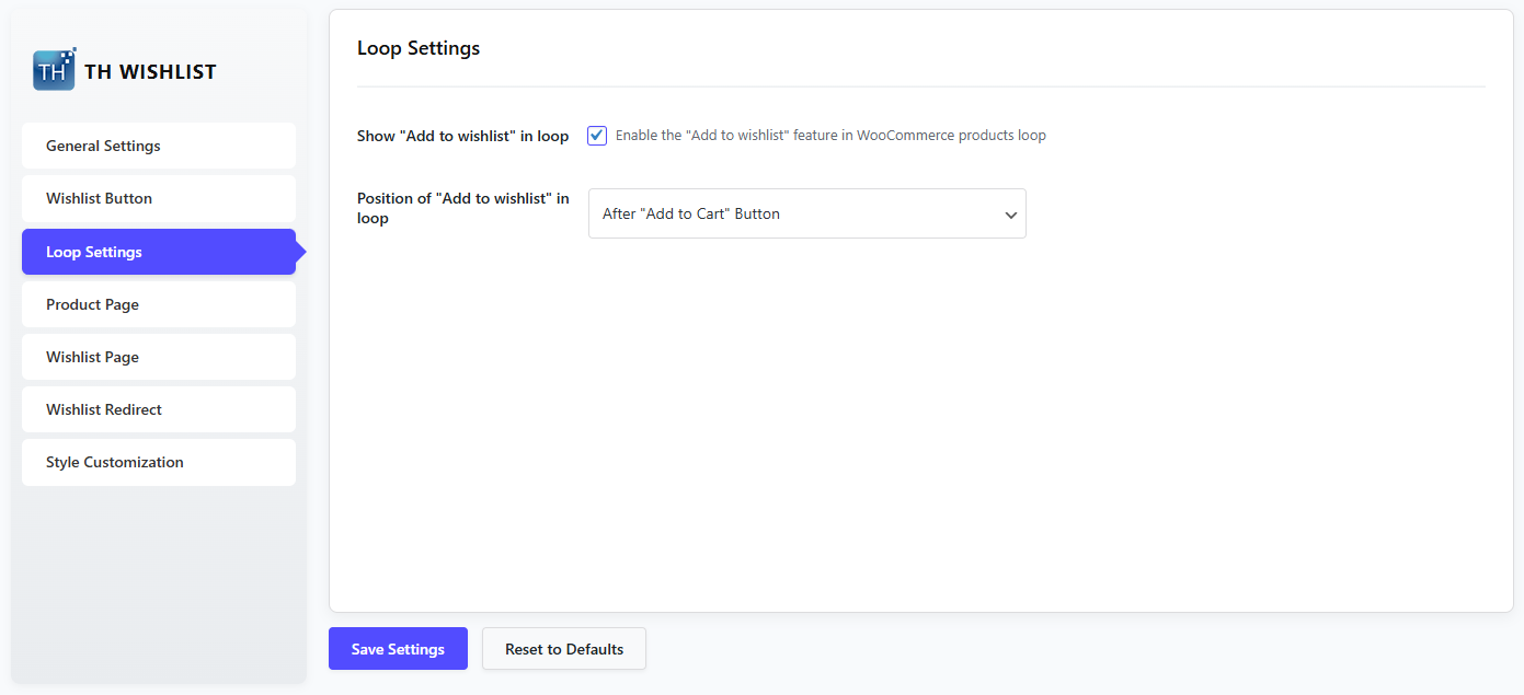Loop Setting- Wishlist settings in loop