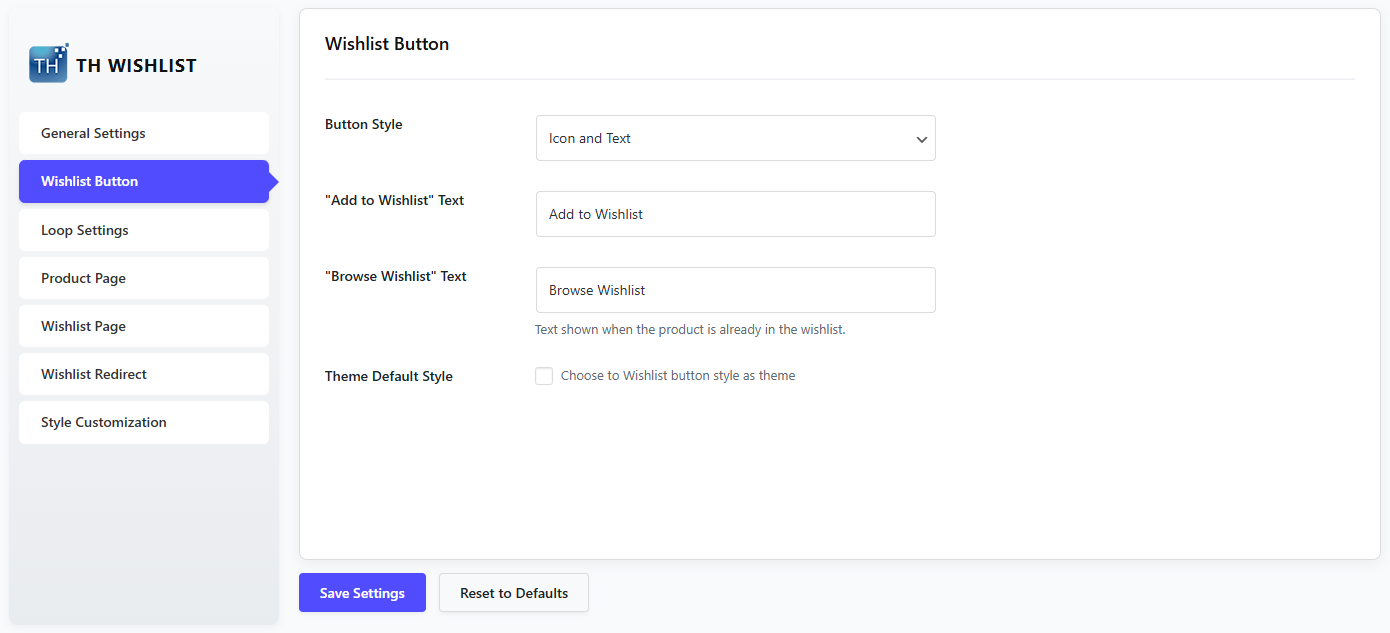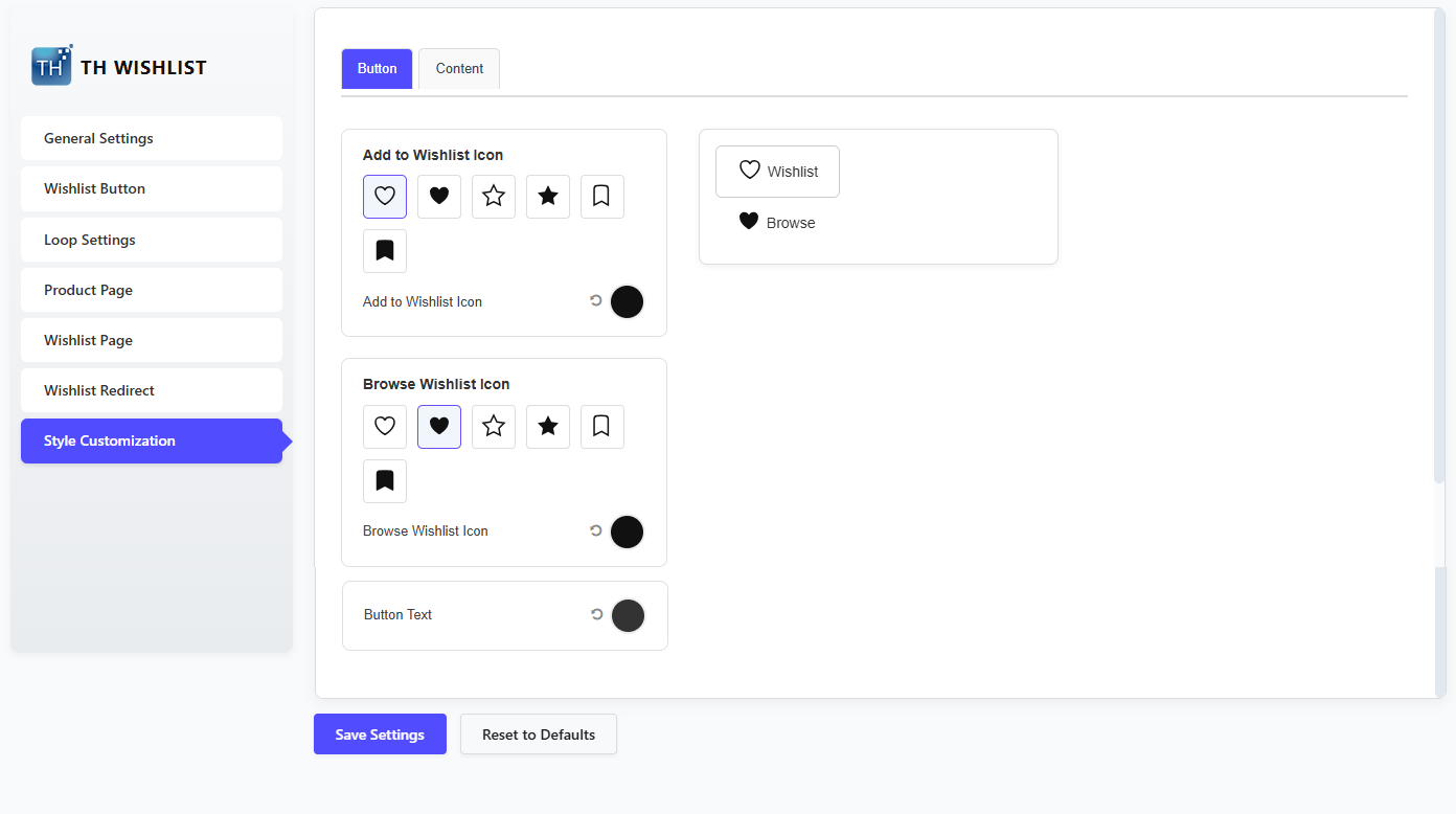 Customize the Wishlist Button Settings