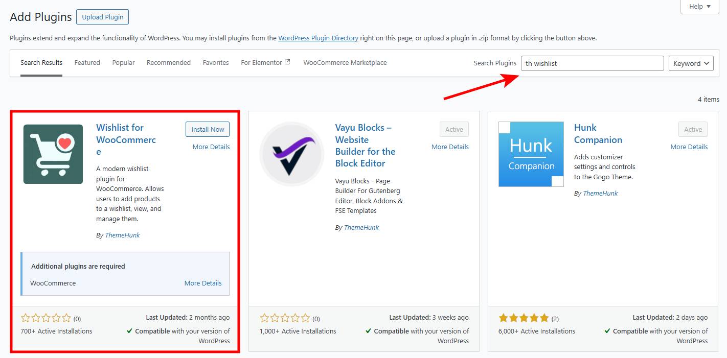 Enter your selected wishlist plugin in the search box.