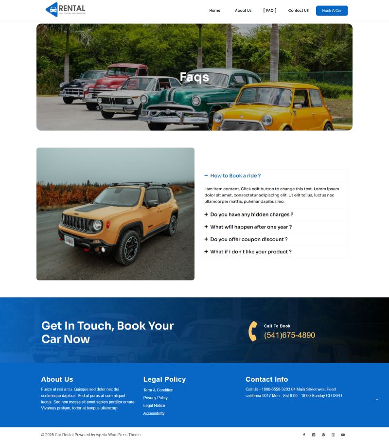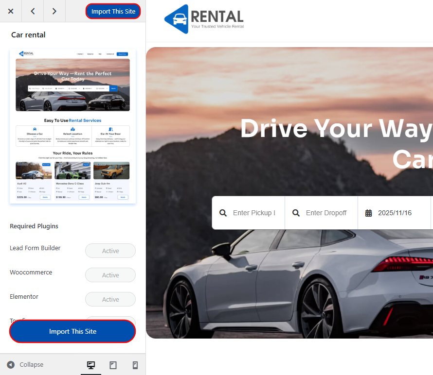 Before installing the Car Rental Service website template, you will need to install Zita Pro theme first. Then you will get access to all the demos.