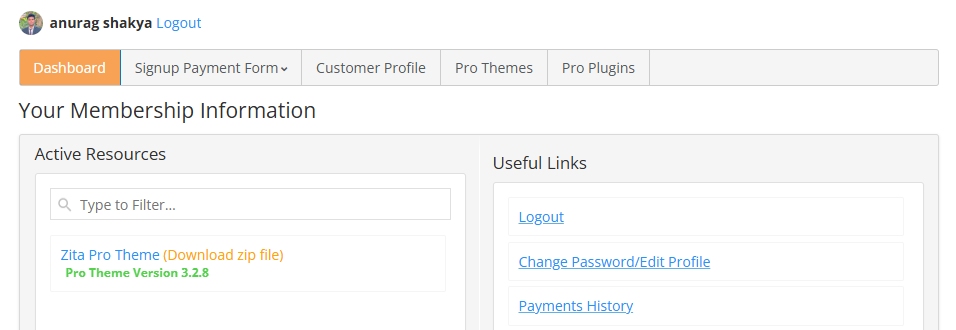 On this page, you will find the themes and plugins you purchased. Download their file from here.