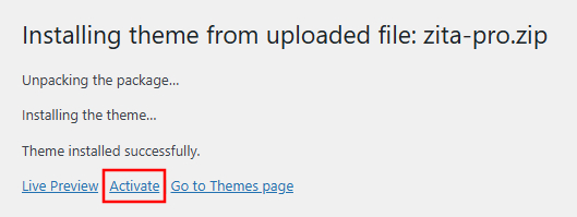 Upload the Zita Pro here and click on Install Now.
