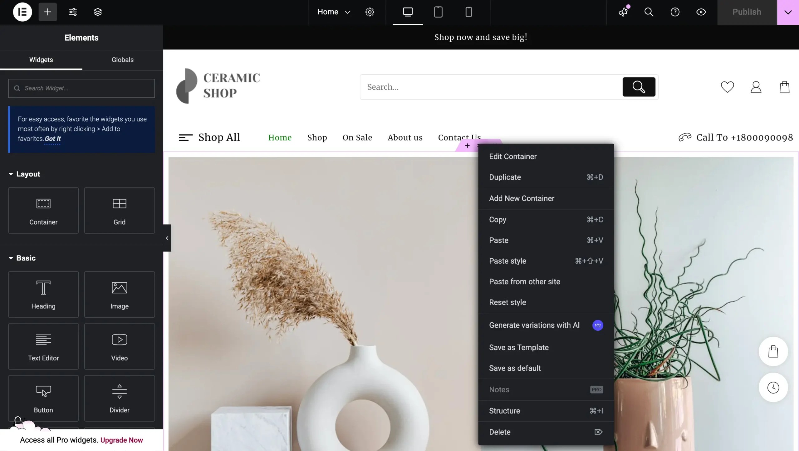 Customizing or modifying the ceramic shop template in Elementor is a straightforward process, thanks to its intuitive drag-and-drop interface.