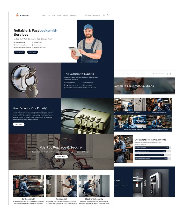Locksmith & Security Systems WordPress Theme Template is a sleek, professional, and highly functional design tailored specifically for locksmiths, security system providers, plumbing, painters, carpentry, realtor, and home mechanization businesses. Featuring a modern and responsive layout, this theme ensures seamless navigation across all devices, from desktops to mobile devices.
