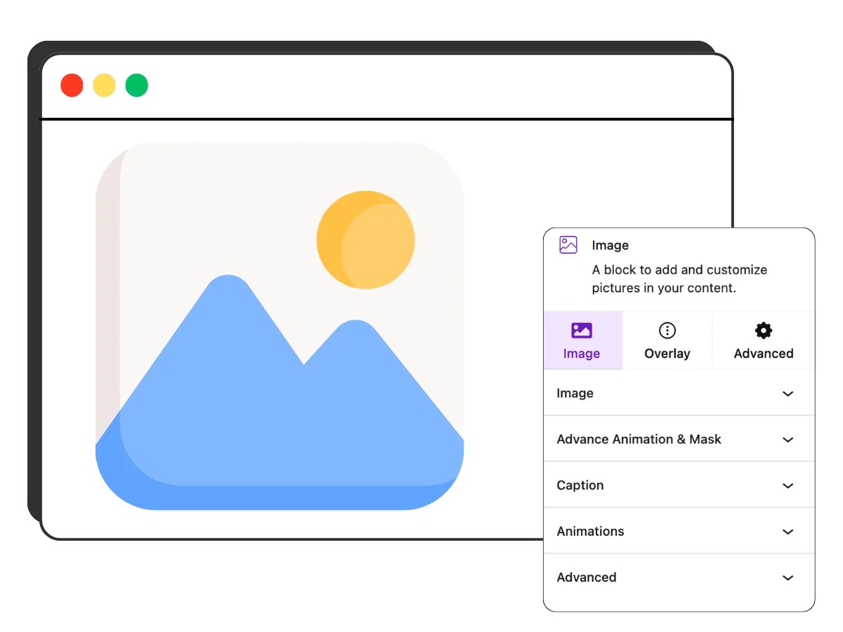 The Image block in Vayu Blocks offers more creative control than the default WordPress option.