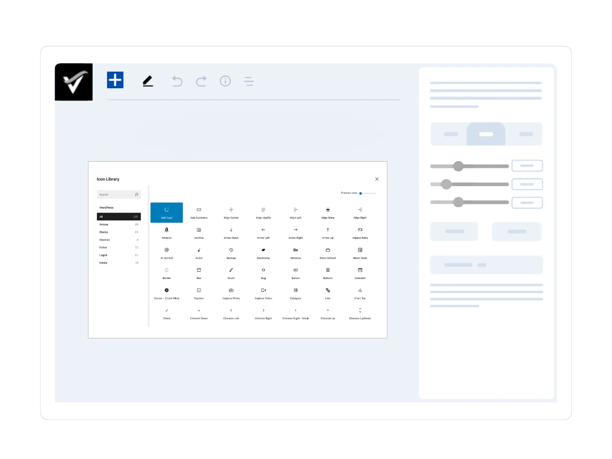 The Icons block gives you access to a rich library of scalable vector icons that can be easily added to your pages.