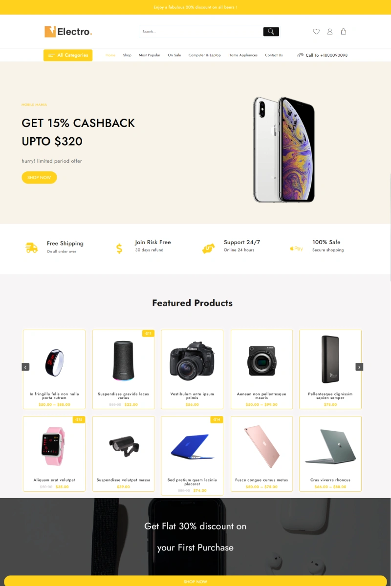 This template is specifically designed for businesses that sell electronic products, much like Flipkart’s dedicated electronics category.