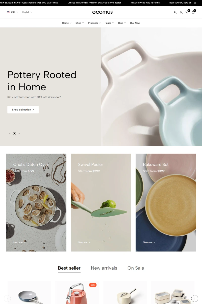 The Ecomus is a versatile eCommerce template designed for businesses across various industries, from fashion and electronics to outdoor and lifestyle products.