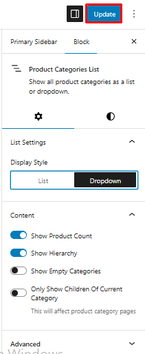 - Show hierarchy: Check this if you want to show subcategories under parent categories (like we set up earlier).