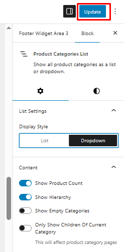 Step 2: Drag the Product Categories widget into a footer widget area.